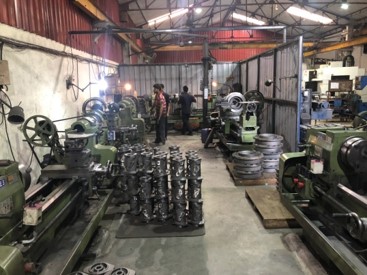 Machine Division is a full fledged setup with latest Machining Centers (VMC), CNC turning Centers and VTL which production capacity range from 6” Chucking to 20” chucking capacity, with conventional machining centers, Milling Machine and set of drilling machines with SPM. All standard inspection facilities with CMM. The machining division runs in three shifts, with the built up area of 9000 Sq.Ft.